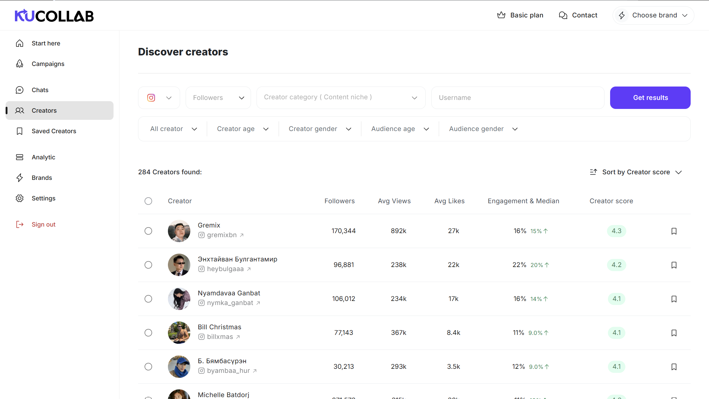 Matching score: Таны зорилтот хэрэглэгчтэй контент бүтээгч хэдэн хувь тохирч байгааг харах