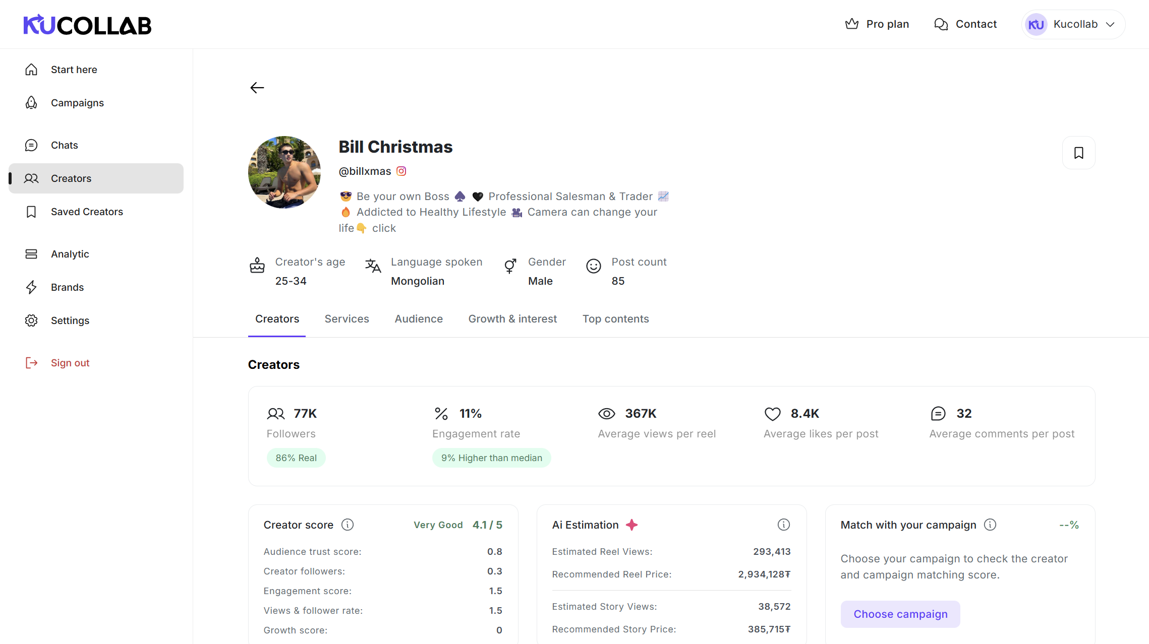 Өмнө нь зөв инфлюэнсерээ олох сонгох хэцүү мөн цаг их ордог байсан бол Kucollab-с бидэнд тохирох контент бүтээгчийг дата дээр үндэслэн нарийвчлалтай хябараар сонгодог болсон. Influencer маркетинг-даа зарцуулдаг цаг их үрдэг ажлууд маан бүрэн шийдэгвсэн.